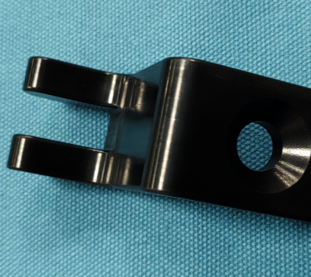 The black anodized and silver polished parts in the image demonstrate both functional machining and surface finishing steps.